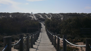Mas o espaço que mais gostei foi da praia das Carretas, é um local praticamente selvagem, sem infraestruturas para servir turistas em massa. Tem um estacionamento limitado de terra, e uma plataforma em madeira que sobe pelas dunas e permite o acesso à praia. Antes das dunas existe de um lado uma lagoa, da qual agora não me recordo do nome, e um percurso pedestre chamado de Barbaroxa. Do outro lado o espaço é vedado impedindo assim a destruição da flora e fauna nativas.